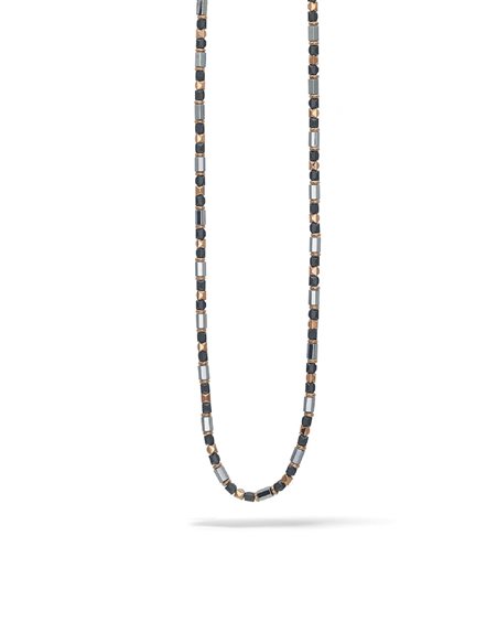 Girocollo in acciaio lucido con trattamento in PVD rosè. Ematite nera sabbiata ed ematite con trattamenti PVD rosè e acciaio
