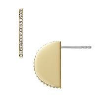 Orecchini in acciaio 316l con IP oro giallo con cristalli. Paletto e farfallina in acciaio lucido.