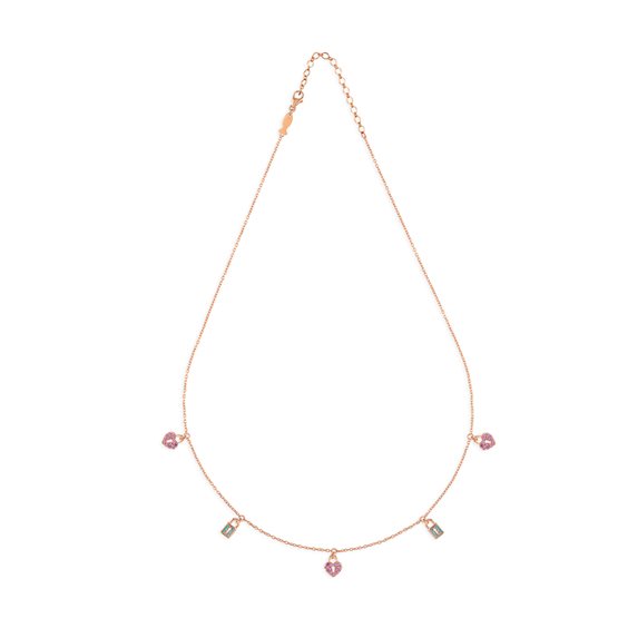 COLLANA AG 925 LOVE LOCK Finitura Rosegold , Â Zirconi Paraiba e Rosa
