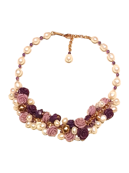 Collana con perle acqua dolce ed elementi a forma di rosa. Garanzia ufficiale non disponibile. Scatola originale non disponibile.