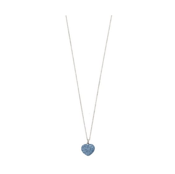Collana in Argento 925 rifinito con Pendente centrale a cuore di polvere di Carbonio blu.