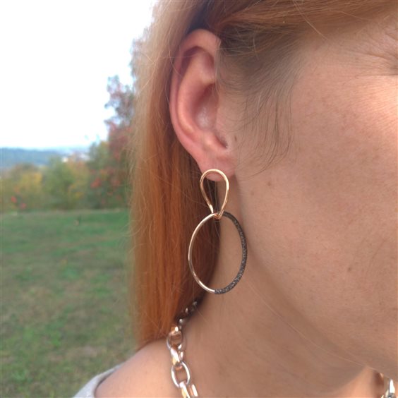 Argento 925 parzialmente ricoperto dallo speciale materiale Polvere di Sogni. Si tratta di micro-particelle ottenute, con la nanotecnologia, dalla lavorazione di materiali naturali minerali, a seconda delle caratteristiche e dei colori che si desiderano ottenere, e hanno una forma esagonale per esaltare l'effetto ottico della riflessione