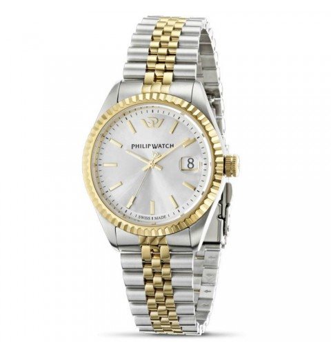 Orologio uomo Philip Watch Caribe con cinturino jubilèè in acciaio e oro e cassa rotonda 39mm. Orologio con movimento al quarzo, vetro zaffiro, e fondello in oro giallo