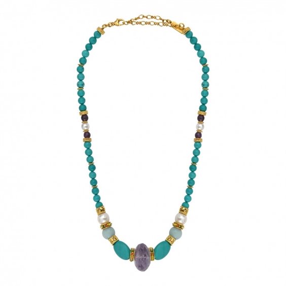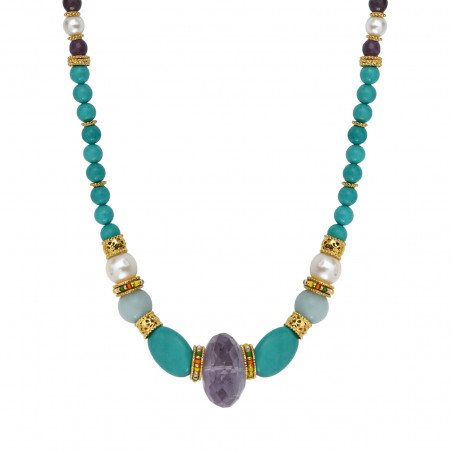 Composizione Perline giapponesi Colore Turchese Metallo Metallo color oro 18 carati Chiusura Collier Matière Perle di cristallo Tipologia di prodotto Collana Dimensioni L.40 cm + catena regolabile 8 cm