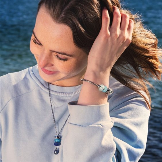 Onda Cristallina. Ogni piccola goccia può creare un'onda. I beads in vetro sono prodotti artigianalmente e possono differire l'uno dall'altro per forma, colore e grandezza. Questa diversità è ciò che li rende unici, autentici e non rappresenta un difetto di produzione. L'immagine ha il solo scopo di illustrare il prodotto.
