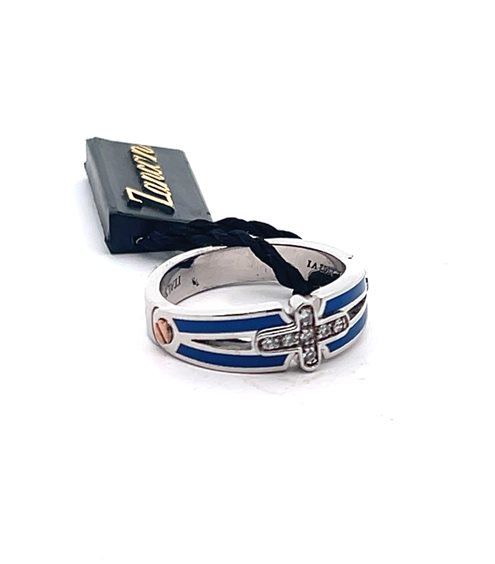 Argento oro zirconi e smalto blu Spessore 6mm